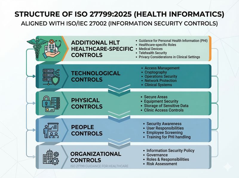 - ISO 27799:2025 Health informatics — Information security controls in health based on ISO/IEC 27002, ISO.org, 2025, https://www.iso.org/standard/83930.html